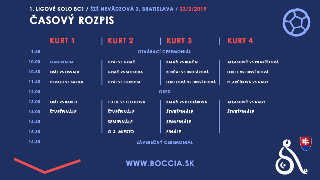 Už v sobotu 23. 2. 2019 to všetko odštartuje. Prvými v akcii budú hráči v kategórii BC1.