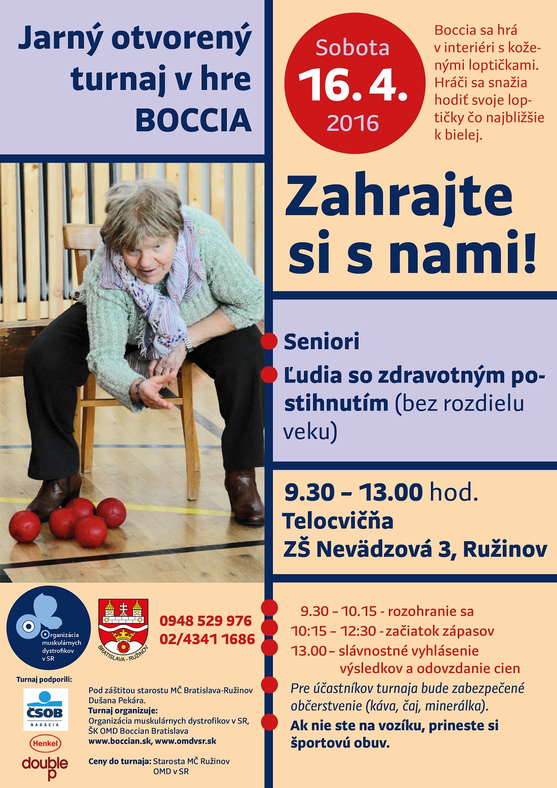 Organizuje ho naše občianske združenie Organizácia muskulárnych dystrofikov v SR prostredníctvom svojho športového klubu ŠK OMD Boccian Bratislava pod záštitou starostu MČ Ružinov Dušana Pekára.