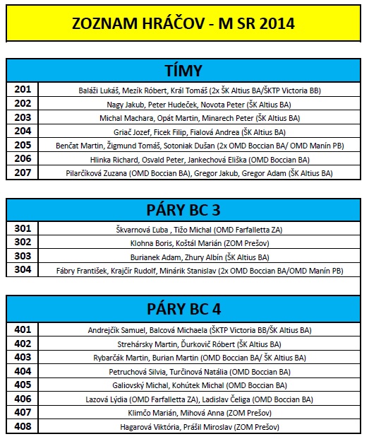 TS pozvánka na MSR 2014 – Boccia – Páry, Tímy |
