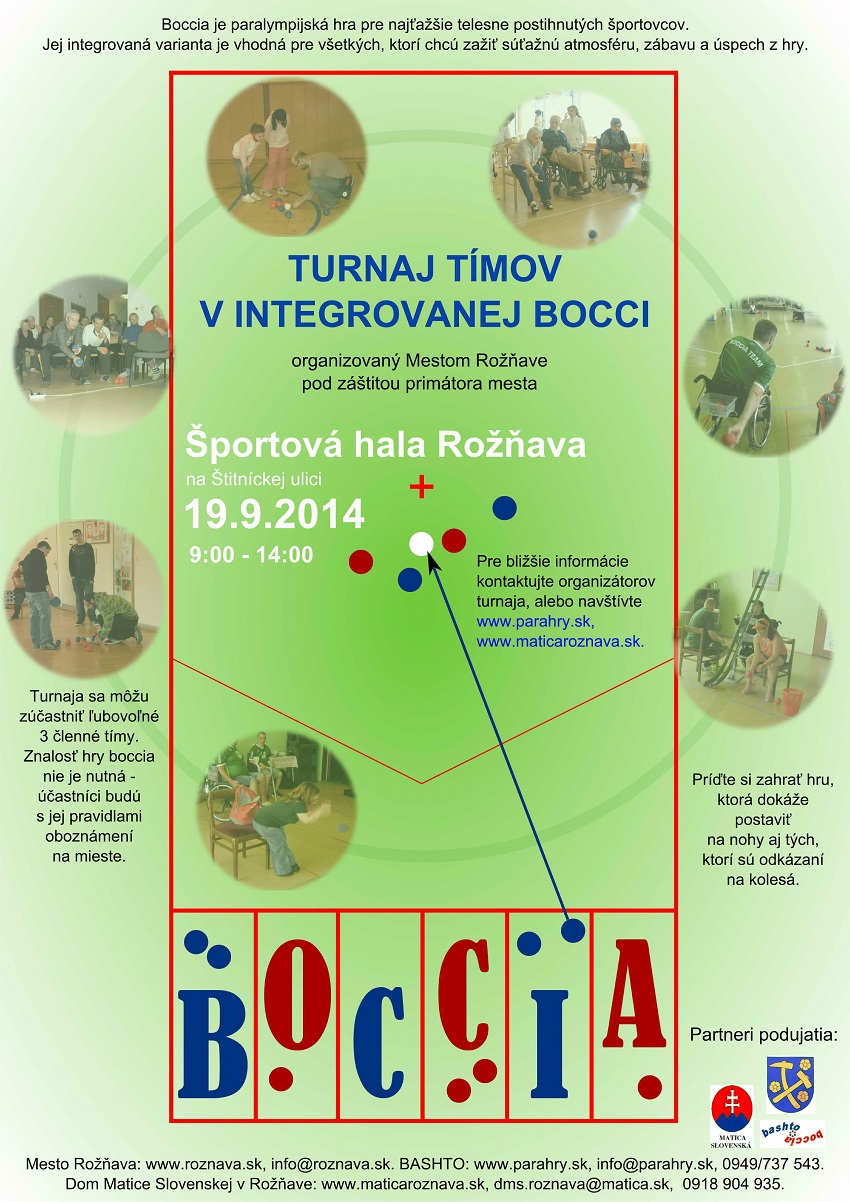 V Rožňave dňa 19.9.2014 sa uskutoční turnaj tímov v integrovanej bocci. Všetci ste srdečne pozvaný.